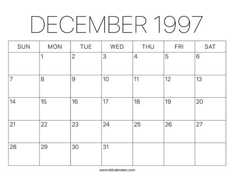 December 1997 calendar with holidays monthly printable calendar