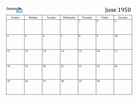 June 1950 Calendar. View online or print in pdf format. 1 january new year's day: