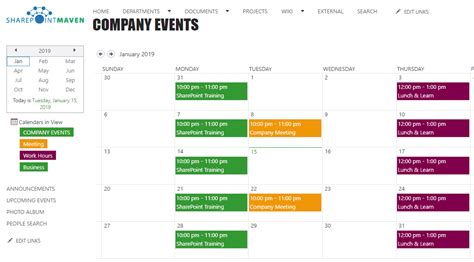 Missouri river outfitters chapter of the santa fe trail association membership meeting and program, 10:00. Missouri river outfitters chapter of the santa fe trail association membership meeting and program, 10:00. The event planning site template is a team site designed to serve as an internal home. Click this link to view and manage all the polls created by you. Web hover your mouse above or below an existing web part or under the title region, select , then select the group calendar web part. Web sharepoint online calendar list provides a convenient and visual way to organize meetings and events. Find the app calendar or search from the. Follow the guide below to learn how to create a calendar app. The calendar is often used within sharepoint team sites to keep track of. Click on gear settings and then on add an app. You can use a calendar to store team events, including.