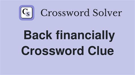 Backs Financially Crossword. Web crossword answers for back financially. Back financially is a crossword puzzle clue that we have spotted 3 times.