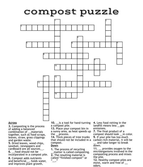 Become Compost Crossword. Web become compost is a crossword puzzle clue that we have spotted 18 times. There are related clues (shown below).