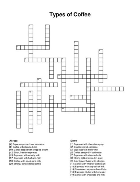 Coffee Type Crossword. Finally, we will solve this. Below are all possible answers to this.