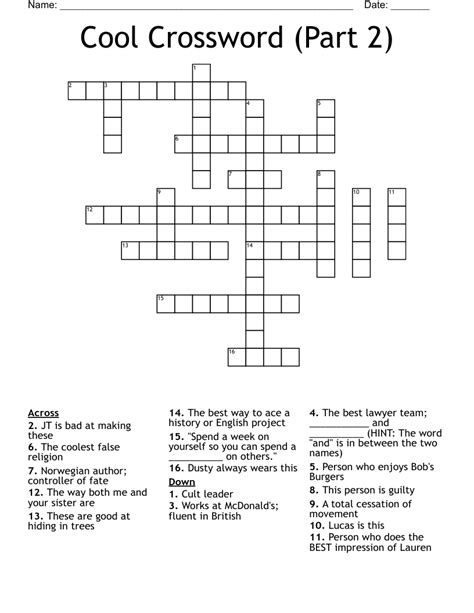 Cool It Crossword. Create four groups of four! Check save submit reveal reveal letter solution 00:00 across 1.