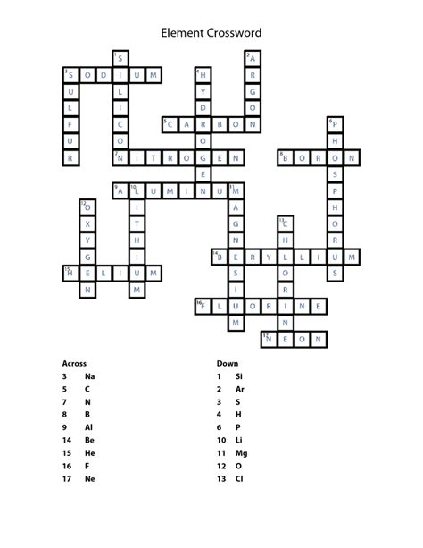 Element Crossword Puzzle Answer Key. Web here are the possible solutions for element clue. Web this is the answer key and printable pdf file for element word search #1. the names of all of the chemical elements are included in this word search.