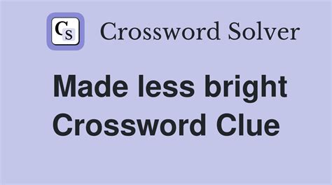 Web the crossword solver found 30 answers to less clear or bright, 5 letters crossword clue. We will try to find the right answer to this particular crossword clue. Why not give our database a shot. Web sunny cheerful definition of bright Here are the possible solutions for. Solve your make less bright crossword puzzle fast & easy with the. While searching our database we found 1 possible solution for the: There are related clues (shown below). The crossword solver finds answers to classic crosswords and cryptic. Today's crossword puzzle clue is a quick one:
