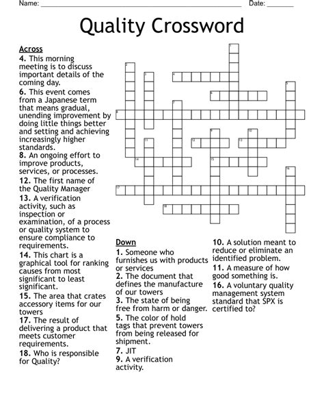 Quality Week Crossword Puzzle WordMint