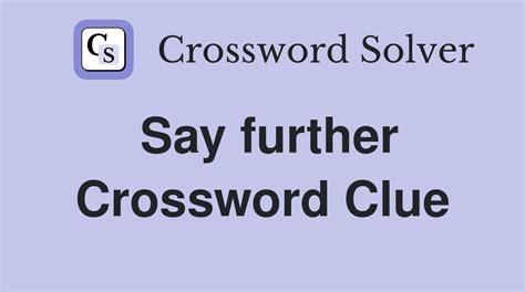 Say Further Crossword. Web say further crossword clue. There you have it, we hope that helps you solve the puzzle.