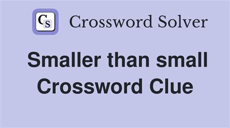 Smaller Than Small Crossword. The solution we have for smaller than small has a total of 6 letters. Smaller than small crossword answer.