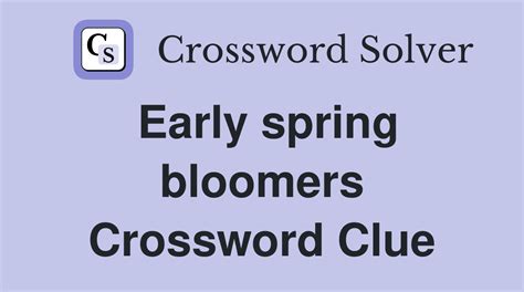Spring Bloomer Crossword. Since you already solved the clue spring bloomers which had the answer hyacinths, you can simply go back at the main post. Try your search in the.