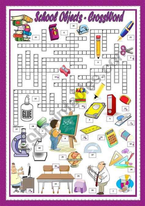 Classroom Objects Crossword ESL worksheet by vairor2