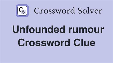 Unfounded Rumour Crossword. Canard crossword quick solve having trouble solving the crossword clue unfounded rumour ? Unfounded rumor is a crossword puzzle clue that we have spotted 4 times.
