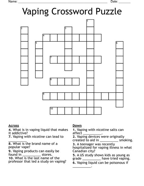 Tobacco and Vaping Crossword Puzzle! WordMint