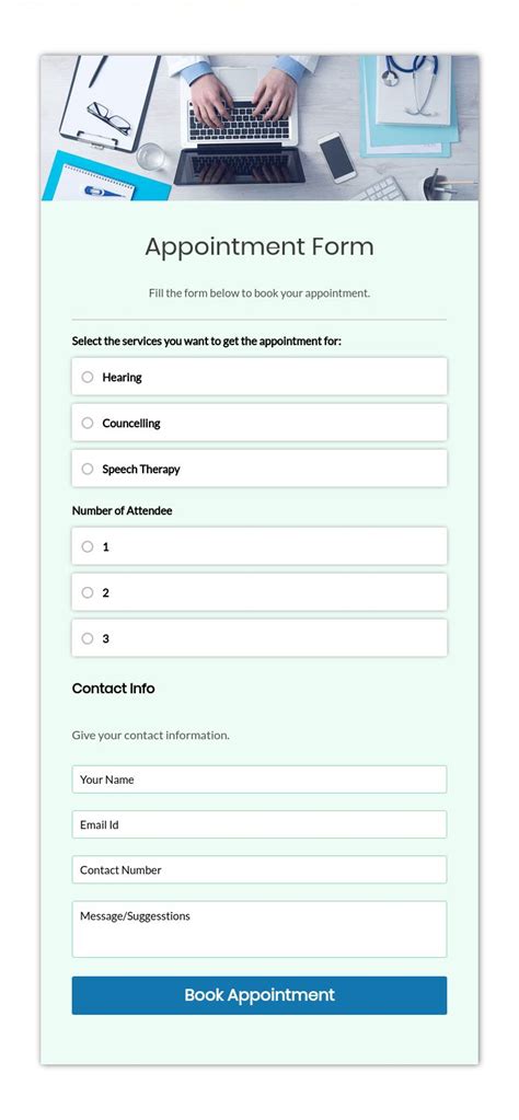 Book An Appointment Form. Start your free trial today! Spend less time emailing back & forth trying to schedule appointments.