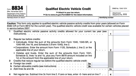 Fillable Form 8834 Qualified PlugIn Electric And Electric Vehicle