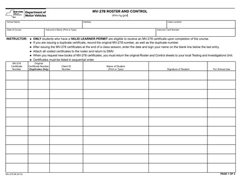 Form Mv278.5n Mv278 Roster And Control printable pdf download