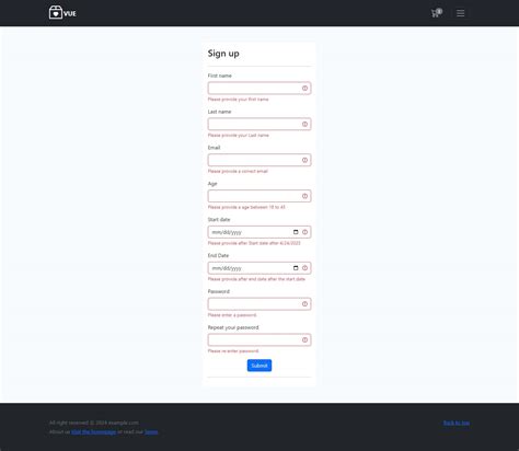 Vue 3 Form Validation. Web when dealing with forms on the frontend, we often need to sync the state of form input elements with corresponding state in javascript. Web 7 rows vue 3 form validation is the process of ensuring the correctness, consistency, and security of.