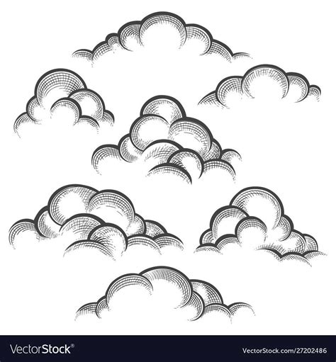 Clouds engraving set Royalty Free Vector Image , Sponsored, set,