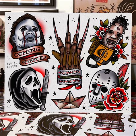 Horror Tattoo Flash. See more ideas about tattoos, horror tattoo, scary. See more ideas about art tattoo, tattoos, movie tattoos.