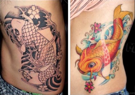 Koi Rib Tattoo. Enhance your body art with these unique ideas and make. Red koi swimming upstream with leaves koi fish tattoos this lovely tattoo of a koi fish is traditionally.
