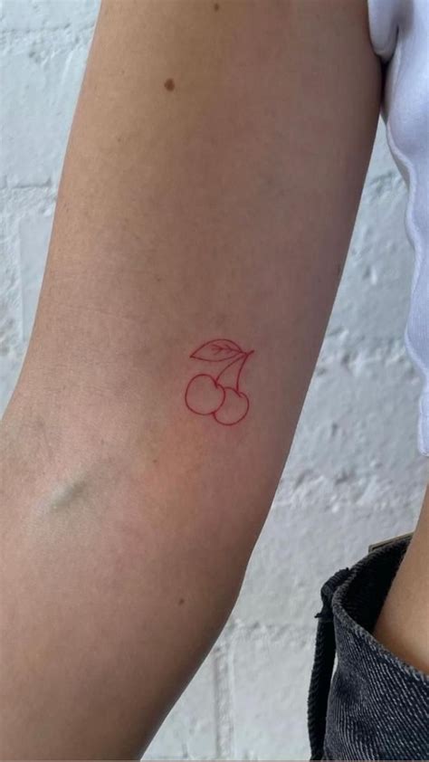 Minimalist cherry tattoo on the bicep.