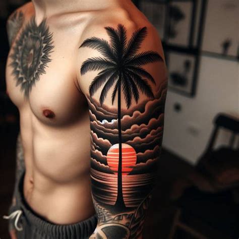 A delicate and dainty palm tree. Web the tattoo features the sun behind the palm tree and birds flying around the tree. Sun next to palm tree tattoos form. It gives calm, relaxing vibes. Web if you are looking for ideas and inspiration for a palm tree tattoo, then we got you covered. Web a captivating circular tattoo design featuring a serene palm sunset, encapsulating the beauty of nature within. A super small palm tree tattoo 3. In this blog post, we will talk about palm. Web some flowers on the palm tree tattoo design stand for connection with the divine; A palm tree sunset tattoo 4.