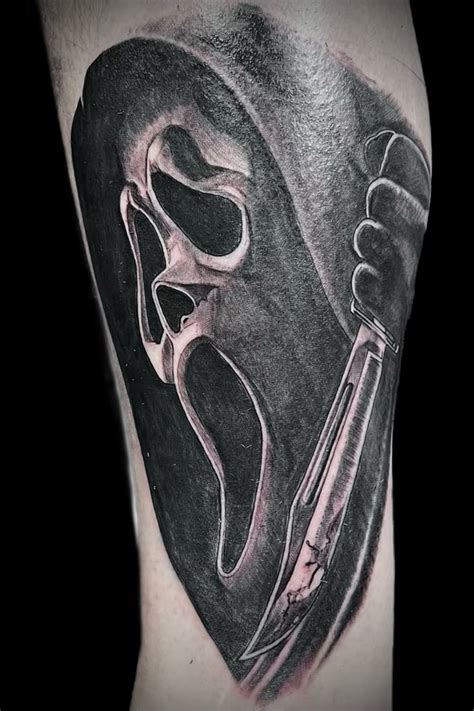 Scream Tattoo Sleeve. For the committed horror fan, a ghostface tattoo sleeve offers a large canvas to display the. Horror movie arm tattoos 3.