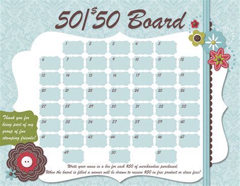 50/50 Board Template. A fundraiser virtual 50/50 game with one deck of cards. The first bracket is a.