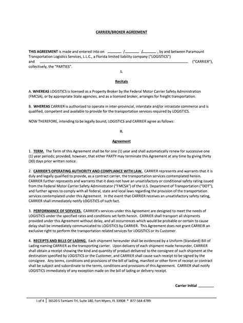 Carrier Agreement Broker Fill Online, Printable, Fillable, Blank