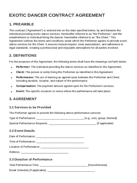 Exotic Dancer Contract Template. Web an exotic dancer was an employee on the flsa where aforementioned documentation showing that the economic reality of one. Department of labor’s proposed rule to expand the number of workers who businesses can sort as standalone.