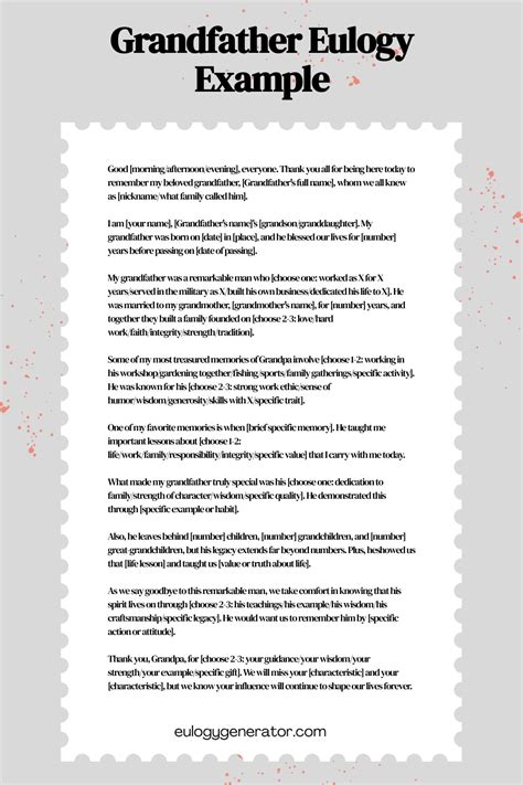 Grandfather Eulogy Template. Web 43 heartfelt eulogy templates & outlines (father, mother, friend) a eulogy is a tribute speech meant to honor the deceased’s life. Web eulogy examples for your grandfather.