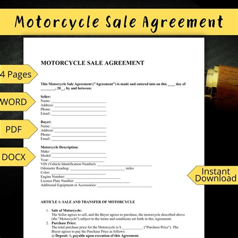 Motorcycle Purchase Agreement Template. Web our get motorcycle installment sale, also termed a hired purchase agreement canister be used when the seller accepts salary. Web motorcycle intake sale template.