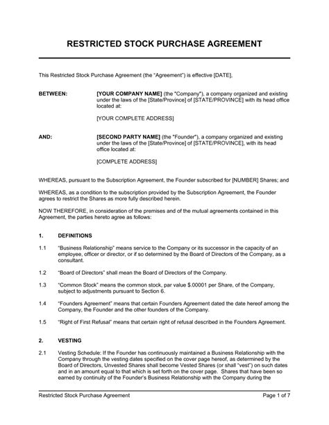 Restricted Stock Agreement Template. (a) subject to the provisions. A restricted stock agreement is a contract that limits a stockholder's ability to sell stock.