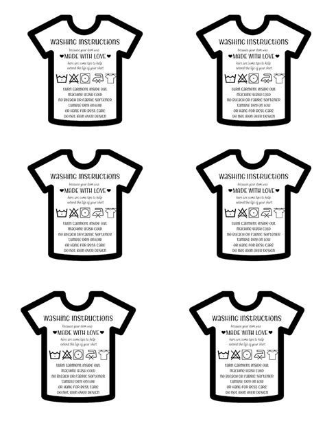 Tshirt Care Cards Tshirt Washing Instructions Instant Etsy