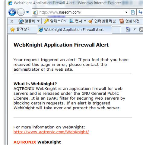 WebKnight Application Firewall Alert 해결 방법
