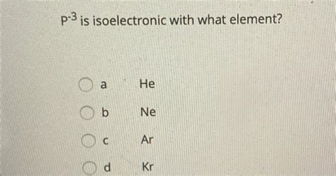 What Element Is Isoelectronic With P-3. Web both ions mg2+ and al3+ and atoms of ne are isoelectronic with na+: Web the electron configuration for ca 2+ is the same as that for argon, which has 18 electrons.
