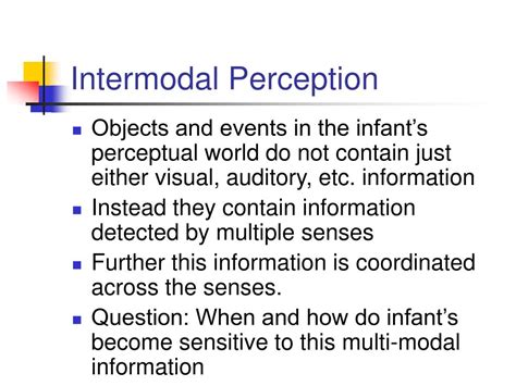 What Is Intermodal Perception. Web what is intermodal perception? Web intermodal perception (also called intersensory or multimodal perception) refers to perception of information from objects or events available to multiple.