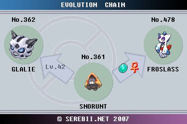 It is one of snorunt's final forms, the other. It is one of snorunt's final forms, the other. It evolves from a male snorunt at level 42. See answer (1) best answer. It evolves from snorunt starting at level 42. There are currently a total. Web glalie does not evolve but snorunt evolves into glalie at lvl 42. It evolves from snorunt starting at level 42. You have to get a female snorunt. Web what level does snorunt evolve into glalie on pokemon diamond? Use a female snorut and give it a dawn stone and you will get a frosslass.