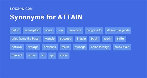 Web synonyms of attain transitive verb 1 : Gain, achieve attain a goal 2 : To come into possession of : Attain a ripe old age intransitive verb Realized, achieved, accomplished, terminated, completed, finished, over, ended; On this page you'll find 86 synonyms, antonyms, and words related to attain, such as: To come to as the end of a progression or course of movement they attained the top of the hill. Web what is another word for attain? Obtain he attained preferment over his fellows 3 : Arrive at, gain, hit, make, reach. Web synonyms of attain transitive verb 1 :