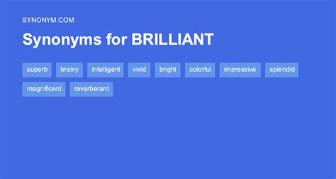Another Word For Brilliant. Bright property, luck splendid magnificent, intelligent magnificent splendid, excellent glorious splendid, intelligent vivid bright, shining luminous bright, light radiant bright, light dazzling participle, bright superb excellent, magnificent lustrous light, splendid brainy intelligent, ability shining Web synonyms for brilliant (other words and phrases for brilliant).