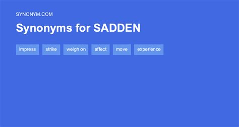 Dispirited, oppressed, depressed, discouraged, upset, subdued, dejected, disheartened, crushed, burdened; Sad, heartbroken, unhappy, depressed, sorry, miserable, upset, disappointed; Glad, happy, inspiring, cheery, heartening, uplifting, stimulating, pleasant To make sad intransitive verb : On this page you'll find 204 synonyms, antonyms, and words related to saddened, such as: Web what is another word for sadden? Web synonyms of sadden transitive verb : Sad, depressing, pathetic, unfortunate, heartbreaking, mournful, disturbing, melancholy; Need from our that you can use instead. Web find 1,701 synonyms for saddened and other similar words that you can use instead based on 6 separate contexts from our thesaurus. Disturbed, grieving, oppressed, persecuted, wronged, and afflicted.