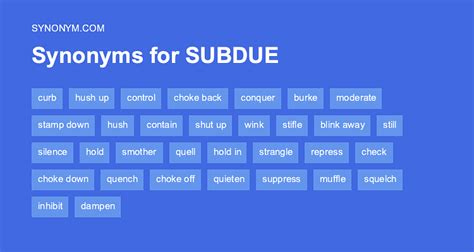 Synonyms for subdued (other words and phrases for subdued). After the argument he was much more. Here's a list of similar words from our thesaurus that you can use instead. “children were subdued and silent”. Loses (to), falls, goes down, fails, collapses, gives up, goes under, folds Overcome, defeat, master, conquer, beat, take, worst, get; Quieted and brought under control. Antonyms for subdued most relevant Web synonyms of subdued : Web another way to say subdued? Overcomes, defeats, masters, conquers, takes, beats, gets, stops;