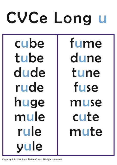 Cvce Long U Words. Long a says /ā/ like acorn. Not only is the e silent, but the vowel that is smushed between the.