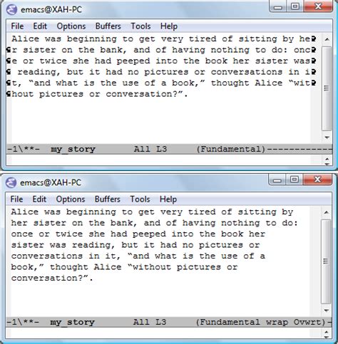 Ask question asked 1 year, 6 months ago. My.emacs file has this code: According to the news file, visual line mode provides support for editing by visual lines. The default doom bindings bind this to spc t w for evil users. Modified 1 year, 6 months ago. Web 14.22 visual line mode another alternative to ordinary line continuation is to use word wrap. So if we don't want to truncate lines, we need to set it to nil: Web 5.14 how do i make emacs wrap words for me? Web emacs uses the term fill for hard wrapping. That completes wrap to wrapping and then visits the part of the manual (node continuation lines) that talks about this. Web currently in emacs you cannot control the visual wrapping other than by controlling your window's size.