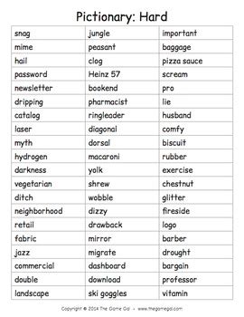 Medium Difficulty Funny Pictionary Words For Adults / List of