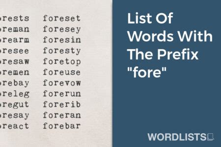 Search for words that contain fore, words that start with fore, or words that end with fore. Words that end in fore, words containing fore. Find the complete word list here. Web words starting with fore: Web found 508 words that start with fore. Other high score words starting with fore are foretop (12), forebye (15), foreman (12), forearm (12), foresaw (13), forepaw (15), foredid (12. Learn these words beginning with the power fore, meaning before. want to increase your prefix power? Web find all words that start with fore. Web a vocabulary list featuring power prefix: Web words that start with forfair>>.