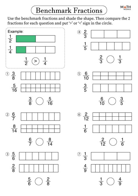 Benchmark Fractions Worksheet. Greater than 1/2 or less than 1/2. Designed for your child's grade level, this.
