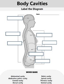 Body Cavities Worksheet. Write the name of the cavity or abdominopelvic region on the line provided below. Bodv cavitv & directional terms worksheet use your notes and the textbook to draw and color in the following body cavities in the diagrams below:.