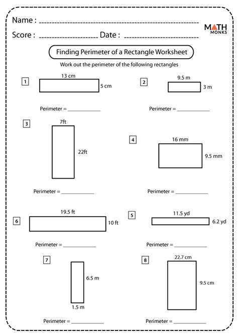 Find the perimeter of a rectangle worksheet