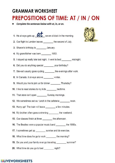 Preposition Of Time Worksheet. Prepositions of time exercise, elementary level. Web prepositions of time worksheets.