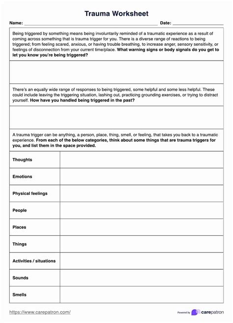 Web post traumatic growth worksheet. Videos won't appear in the files. Web this worksheet comes from mental health america’s mental health month 2021 toolkit. Info sheet offers a basic overview of trauma, including a definition, information about risk factors, symptoms, and common treatments. Web trauma triggers worksheet editable fillable printable pdf. Pdf workbooks, manuals, & guides; Our identifying triggers worksheet editable, fillable, printable pdf template. Web download copies of pages on this website as files. But did you know that trauma affects the body, altering your nervous and immune system, which leads to myriad physical symptoms and disease? Begin by writing down anything that comes to mind related to your traumatic experiences. It’s easy to create and modify.